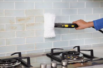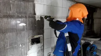 Чистка и удаление жировых отложений с плитки и фартуков на кухне.