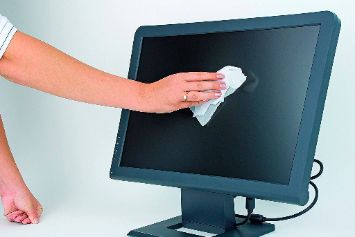 Протирание внешних поверхностей офисной техники, такой как компьютеры, принтеры и телефоны, для удаления пыли и грязи.
