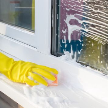 Чистка стекол с внутренней и внешней стороны для удаления пыли и грязи.