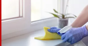 Протирание и чистка подоконников и оконных рам для удаления пыли и загрязнений.